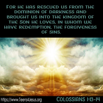 Colossians 1:13-14 For he has rescued us from the dominion of darkness and brought us into the kingdom of the Son he loves, in whom we have redemption, the forgiveness of sins.