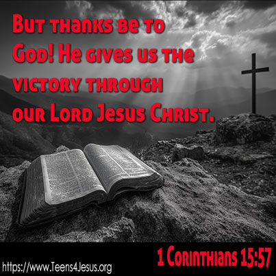 1 Corinthians 15:57 But thanks be to God! He gives us the victory through our Lord Jesus Christ.