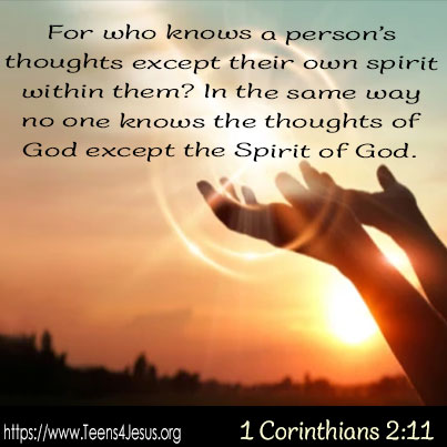 1 Corinthians 2:11 For who knows a person’s thoughts except their own spirit within them? In the same way no one knows the thoughts of God except the Spirit of God.