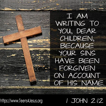1 John 2:12 I am writing to you, dear children, because your sins have been forgiven on account of his name.