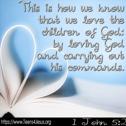 1 John 5:2 This is how we know that we love the children of God: by loving God and carrying out his commands.
