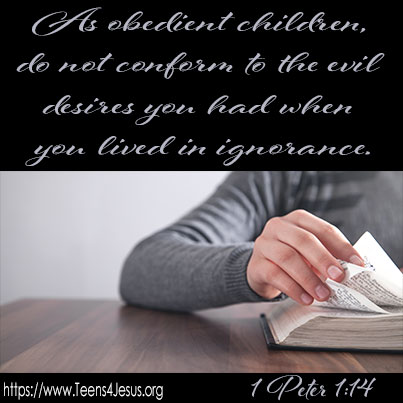 1 Peter 1:14 As obedient children, do not conform to the evil desires you had when you lived in ignorance.