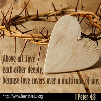1 Peter 4:8 Above all, love each other deeply, because love covers over a multitude of sins.