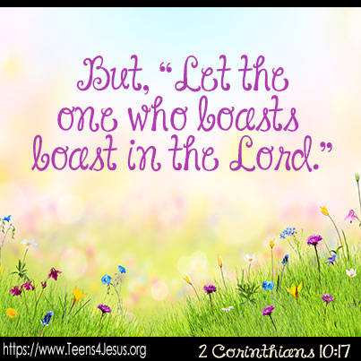 2 Corinthians 10:17 But, “Let the one who boasts boast in the Lord.”