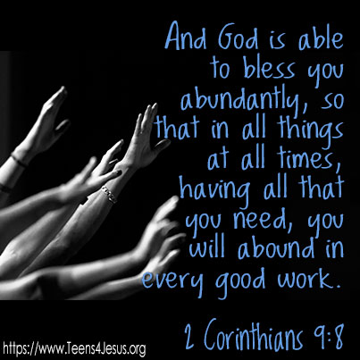 2 Corinthians 9:8 And God is able to bless you abundantly, so that in all things at all times, having all that you need, you will abound in every good work.