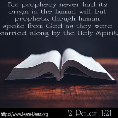 2 Peter 1:21 For prophecy never had its origin in the human will, but prophets, though human, spoke from God as they were carried along by the Holy Spirit.