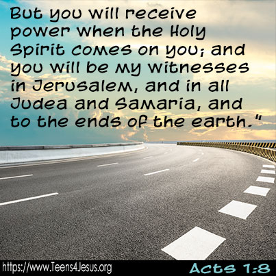 Acts 1:8 But you will receive power when the Holy Spirit comes on you; and you will be my witnesses in Jerusalem, and in all Judea and Samaria, and to the ends of the earth.”