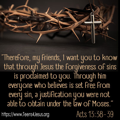 Acts 13:38-39 “Therefore, my friends, I want you to know that through Jesus the forgiveness of sins is proclaimed to you. Through him everyone who believes is set free from every sin, a justification you were not able to obtain under the law of Moses.”