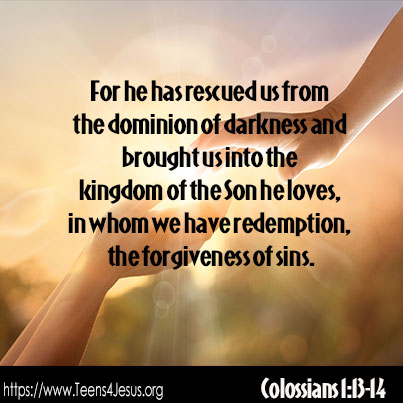 Colossians 1:13-14 For he has rescued us from the dominion of darkness and brought us into the kingdom of the Son he loves, in whom we have redemption, the forgiveness of sins.
