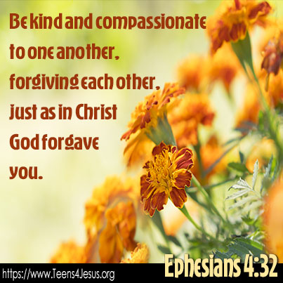 Ephesians 4:32 Be kind and compassionate to one another, forgiving each other, just as in Christ God forgave you.