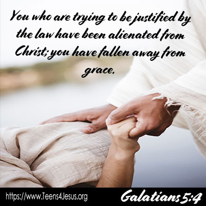 Galatians 5:4 You who are trying to be justified by the law have been alienated from Christ; you have fallen away from grace.