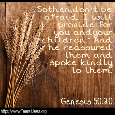 Genesis 50:20 So then, don’t be afraid. I will provide for you and your children.” And he reassured them and spoke kindly to them.