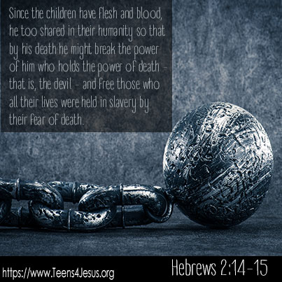 Hebrews 2:14-15 Since the children have flesh and blood, he too shared in their humanity so that by his death he might break the power of him who holds the power of death – that is, the devil – and free those who all their lives were held in slavery by their fear of death.