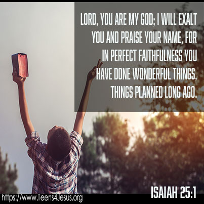 Isaiah 25:1 Lord, you are my God; I will exalt you and praise your name, for in perfect faithfulness you have done wonderful things, things planned long ago.