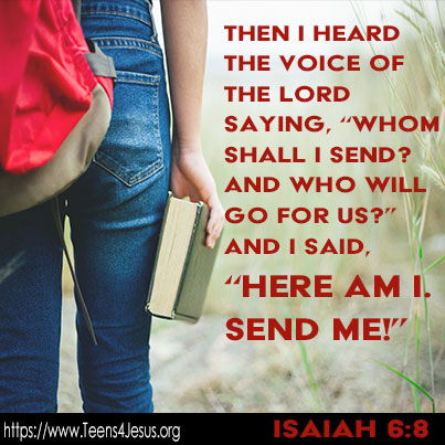 Isaiah 6:8 Then I heard the voice of the Lord saying, “Whom shall I send? And who will go for us?” And I said, “Here am I. Send me!”