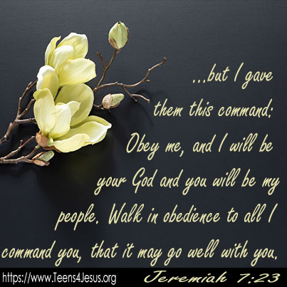 Jeremiah 7:23 …but I gave them this command: Obey me, and I will be your God and you will be my people. Walk in obedience to all I command you, that it may go well with you.