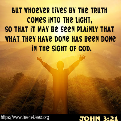 John 3:21 But whoever lives by the truth comes into the light, so that it may be seen plainly that what they have done has been done in the sight of God.