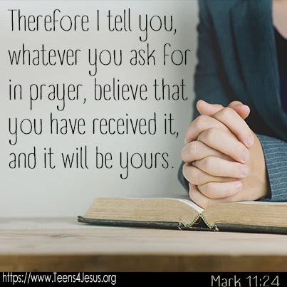 Mark 11:24 Therefore I tell you, whatever you ask for in prayer, believe that you have received it, and it will be yours.