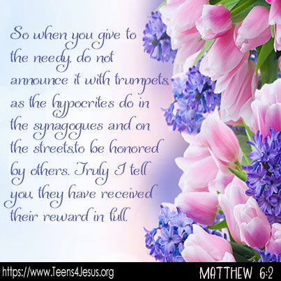 Matthew 6:2 So when you give to the needy, do not announce it with trumpets, as the hypocrites do in the synagogues and on the streets, to be honored by others. Truly I tell you, they have received their reward in full.