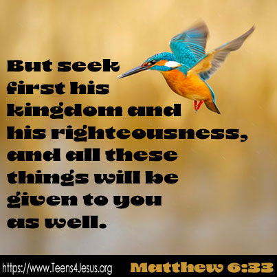 Matthew 6:33 But seek first his kingdom and his righteousness, and all these things will be given to you as well.