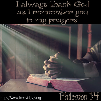 Philemon 1:4 I always thank my God as I remember you in my prayers.