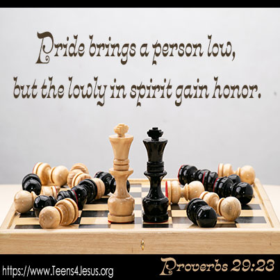 Proverbs 29:23 Pride brings a person low, but the lowly in spirit gain honor.