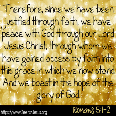 Romans 5:1-2 Therefore, since we have been justified through faith, we have peace with God through our Lord Jesus Christ, through whom we have gained access by faith into this grace in which we now stand. And we boast in the hope of the glory of God.