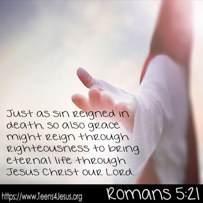 Romans 5:21 Just as sin reigned in death, so also grace might reign through righteousness to bring eternal life through Jesus Christ our Lord.