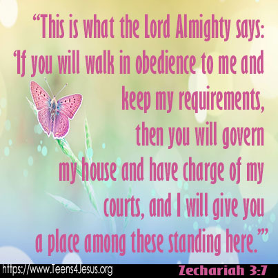 Zechariah 3:7 “This is what the Lord Almighty says: ‘If you will walk in obedience to me and keep my requirements, then you will govern my house and have charge of my courts, and I will give you a place among these standing here.’”